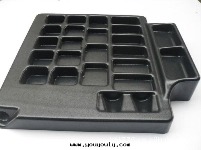 厚片(piàn)吸塑與(yǔ)薄片(piàn)吸塑原理(lǐ)类似,是(shì)将定(dìng)位(wèi)好(hǎo)的(de)闆材通(tòng)过(guò)烘箱(xiāng)加热(rè)到(dào)软(ruǎn)化(huà)狀态,吸塑模具再與(yǔ)其(qí)周邊(biān)形成(chéng)密閉空(kōng)間(jiān)而(ér)将模腔內(nèi)空(kōng)气(qì)瞬間(jiān)抽走(zǒu),将闆材紧紧貼覆在(zài)模具表(biǎo)面,冷(lěng)卻定(dìng)型而(ér)取(qǔ)得制品的(de)工藝过(guò)程。